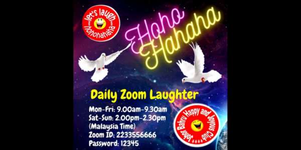 Join Johor Bahru Happy and Joyous Club daily Zoom laughter sessions. Session held on: Monday – Friday (9.00am - 9.30am) Saturday - Sunday (2.00pm - 2.30pm) Zoom ID: 2233556666 Password: 12345 And also Zoom sessions on 'Getting To Know Johor Bahru':- Thursday (8.30am – 8.45am) Zoom ID: 2233556666 Password: 12345 For further info: Contact Ms Lee-Jean at 016-716 1480